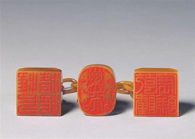 田黄三联印。(饱读浪屿故宫文物馆 供图)