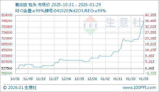 一分彩app官方下载 01月29日氧化钕792500.00元/吨 5天高涨12.01%