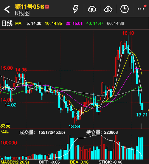 从K线图来看,原糖价钱自3月初波及16.10好意思分的阶段性高点后,一说念颤动下行,跌幅已超14%。