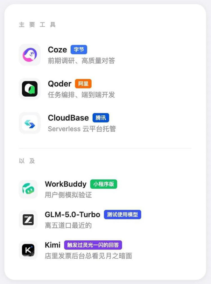 于是,在Coze更新今日,李博用多款AI相助写出Skill:字节的Coze作念调研、阿里的Qoder作念任务编排和缔造、腾讯的CloudBase作念云平台托管,其中Qoder拉起一个AI分身团队,内部有饰演不同变装的AI群众,十几个“东说念主”边究诘边缔造,“呱呱呱干得尽头快”。