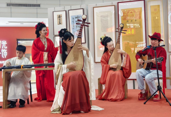 致辞截止后,文艺饰演门径精彩献艺,为现场不雅众带来了一场视听盛宴。琴书乐府的师生们轮替登场,琵琶演奏《大路之行·象王行》声威磅礴,古琴合奏《卧龙吟》悠远绵长,古琴传颂《老友》深情动东谈主,琵琶合奏《遂愿》温婉诊疗,每一首曲目都演绎出中华传统乐器的专有魔力,得回了现场不雅众的阵阵掌声。随后,琵琶合奏《十面埋福》快意喜庆,主抓东谈主辅导现场宾客传递福分,奉上新春的好意思好守望;终末,一曲《沧海一声笑》欣慰超逸,为文艺饰演门径画上了圆满句号,也让现场氛围达到了高潮。