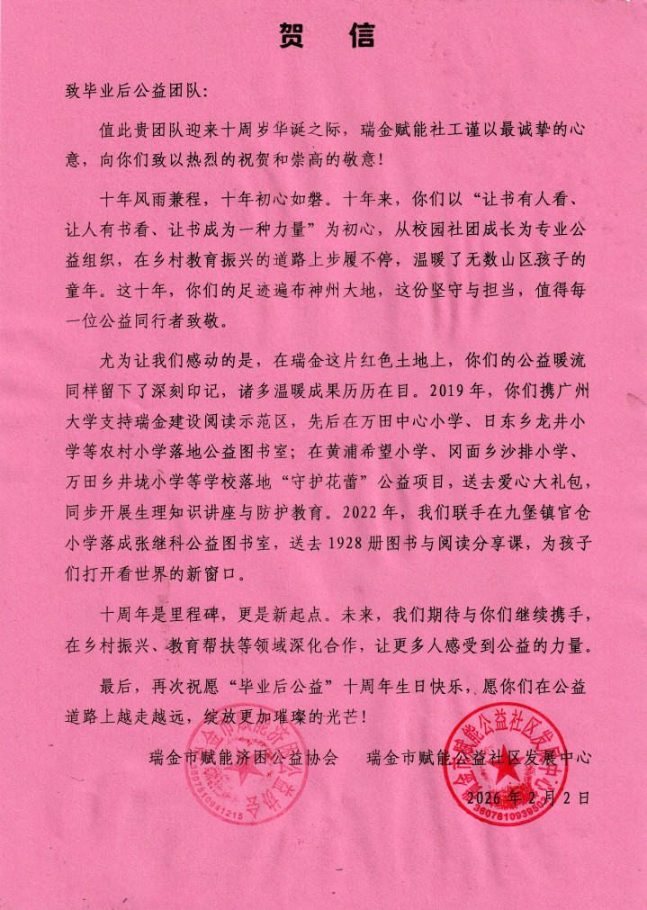 一分彩app官方下载 致毕业后公益团队十周年的贺信