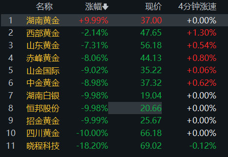 一分彩 贵金属板块大幅回调!多只热点个股跌停,湖南黄金逆势涨停