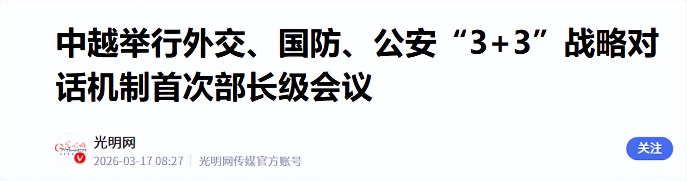 这句话不是随口的社交客套话,而是越共十四大之后,越南最高层达成共鸣、固化下来的历久带领方针,相配于越南指引东说念主给出的最高指令,给越南的社交道路定了调。3月16日,中越社交、国防、公安“3+3”政策对话机制初度部长级会议在河内举行,